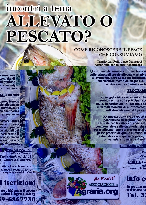 Quale pesce consumiamo? L'Associazione di Agraria.org organizza un breve corso sulle tecniche di allevamento delle principali specie ittiche allevate e sul riconoscimento delle principali differenze con il prodotto pescato. Per ulteriori informazioni fare riferimento alla locandina in allegato.
