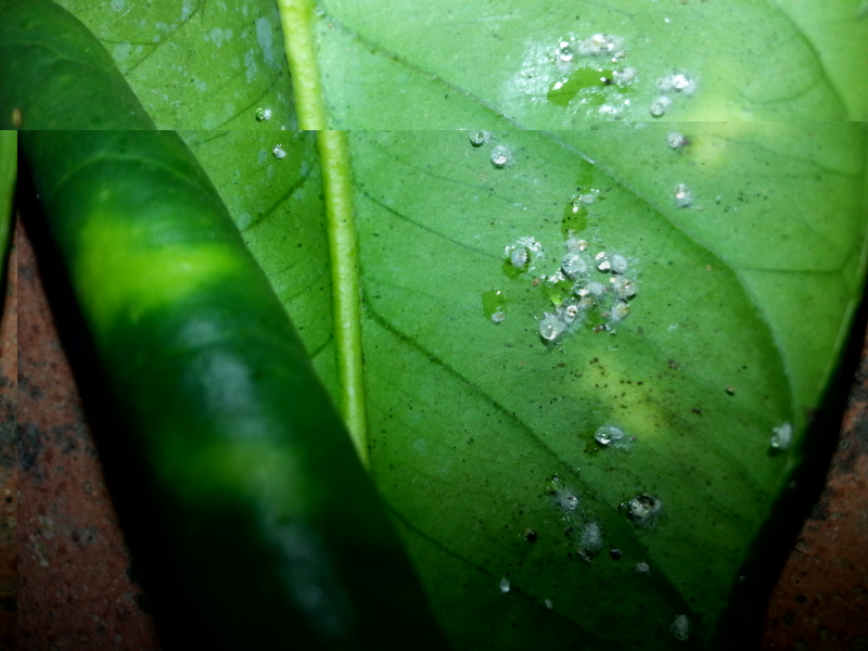 Marcello forse bella foto non si vede bene ma sulle foglie che ho fotografato c'è quella pallina di liquido come si vede nella tua foto. Insomma la mia pianta sembra avere più di un problema.