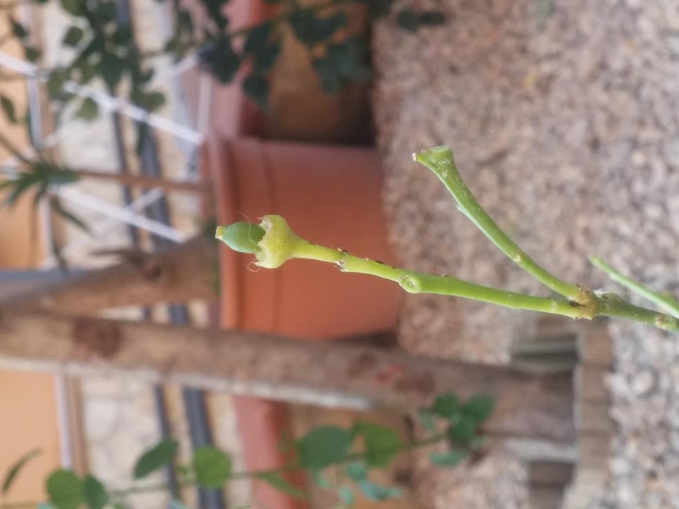 La terra è asciutta,anche a 10 cm. Mi conviene annaffiarla ? Ho paura. Inoltre,quello in foto é un piccolo frutto?