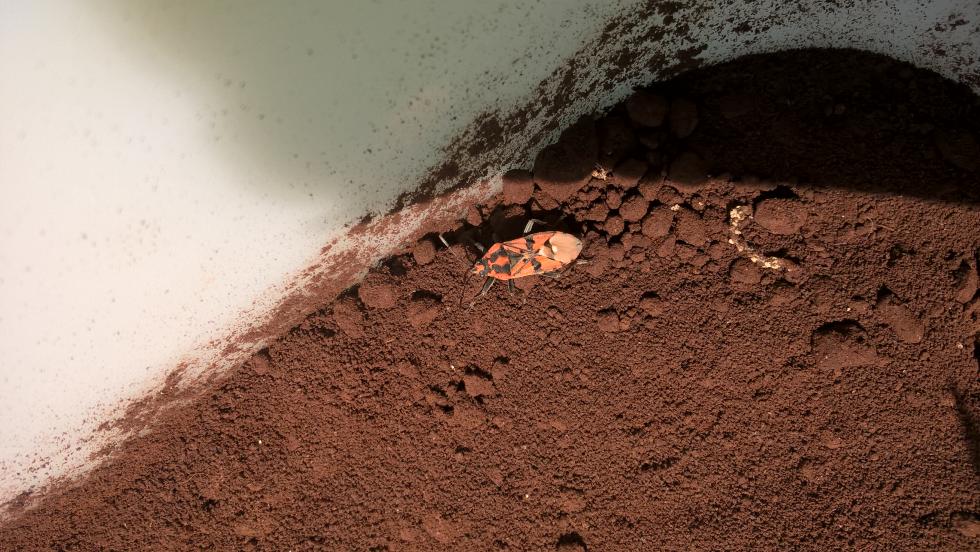 - Questo in realtà non era negli aranci, ma nell'albicocco, sotto una montagna di gomma, che la pianta produce dove ha inglobato uno spago di nylon.