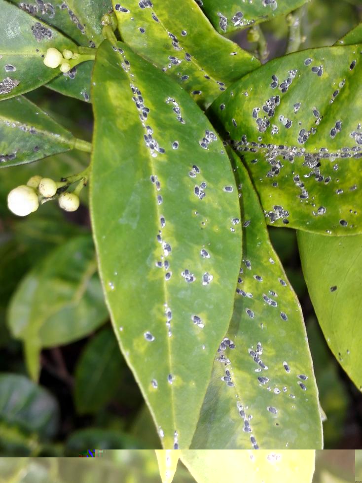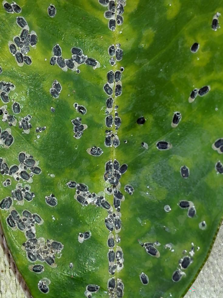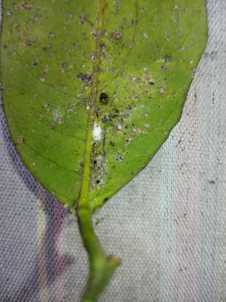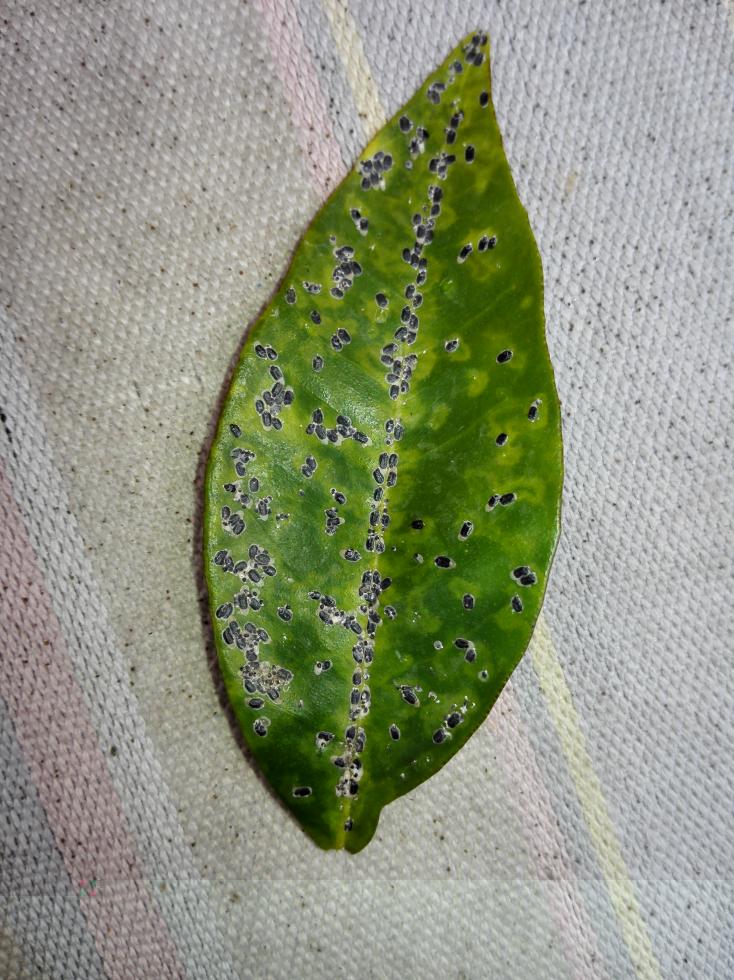 In effetti hai un bel campionario di parassiti. Intanto adesso è chiaro che le formazioni nere non sono i pupari dell'aleurode spinifero bensì si tratta dei follicoli della cocciniglia nera degli agrumi; poi si confermano l'aleurode fioccoso (con contorno di formiche) e la minatrice a serpentina. Per le cocciniglie lungo le nervature accanto ai fiocchi bianchii, come già detto in precedenza è probabile si tratti della cocciniglia bassa degli agrumi o comunque di specie affine; la cocciniglia a elmetto dell'ultima foto è sicuramente una femmina adulta di ceroplaste (l'identificazione corretta viene fatta osservando la parte ventrale): per quel che vedo mi sembra che la piastra dorsale sia contornata da una cefalica, una anale e tre per ogni lato: in considerazione della forma poligonale di quella dorsale opteri anch'io per Ceroplastes rusci.