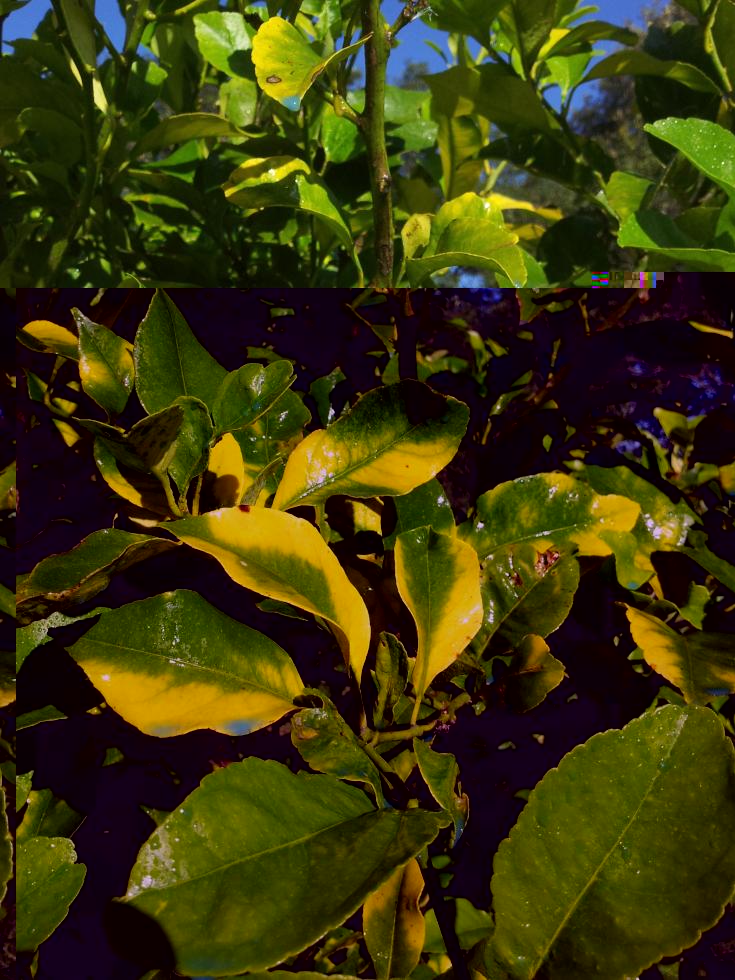 sarebbe inutile il fogliare visto che hai dato il lenta cessione. attento a non esagerare, ve be che la pianta è in terra , diverso dal vaso. ti lascio un link. http://www.patagrumi.pstsicilia.it/imma ... patologie/