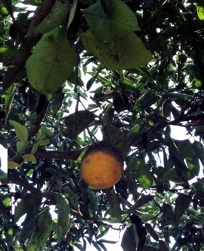 Allego la foto di uno dei pochi frutti, 3-4 in totale, e un'intera, anche se da lontano con foto non si nota molto.