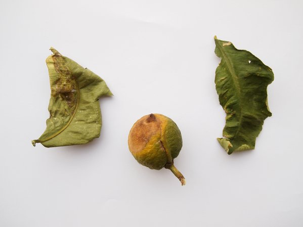 Grazie. In effetti guardando la pagina inferiore delle foglie si notano anche piccolissimi residui bianchi di quella che poteva essere cocciniglia. Magari è stata lavata via dalle piogge. Mi chiedevo invece perché il frutto ha quest'aspetto, ovvero è come se una parte della buccia fosse rinsecchita mentre il resto è normalmente verde.