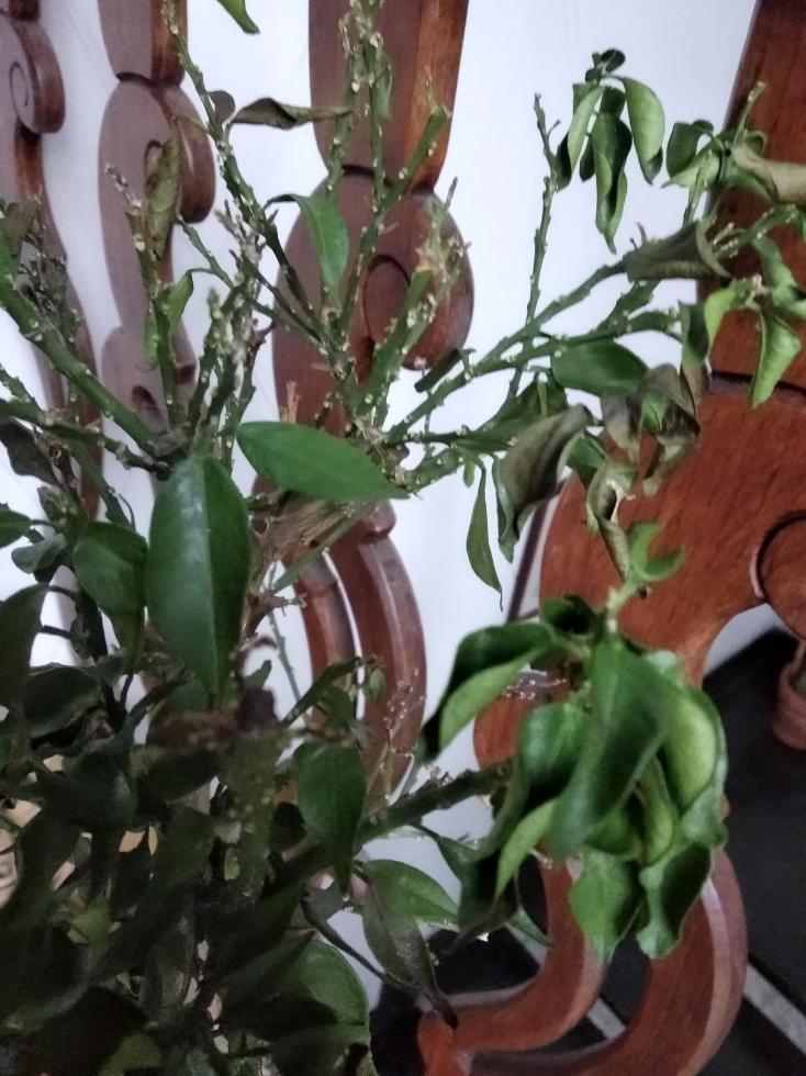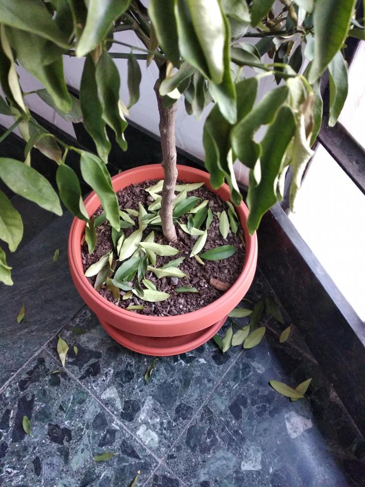 Non so bene che fare. Anche il Kumquat che ho ritirato, pur senza perdere le foglie, le ha messe giù.