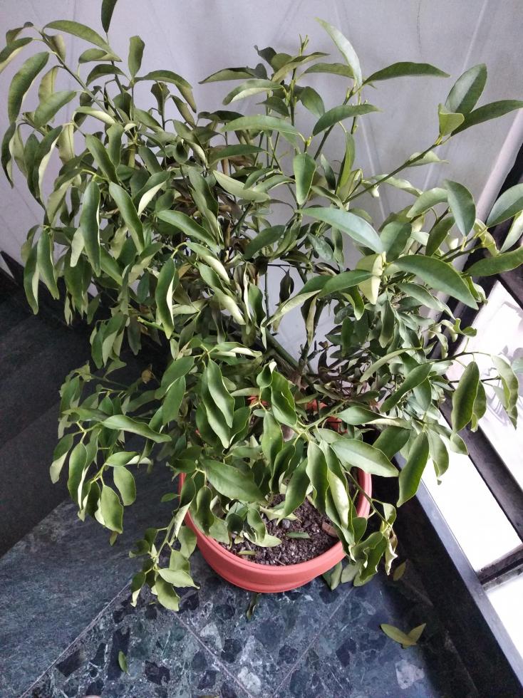 Ora ho comprato una pianta di chinotto e, dopo averla tenuta sul balcone dove stava bene, l'ho ritirata nel vano scale di casa mia.