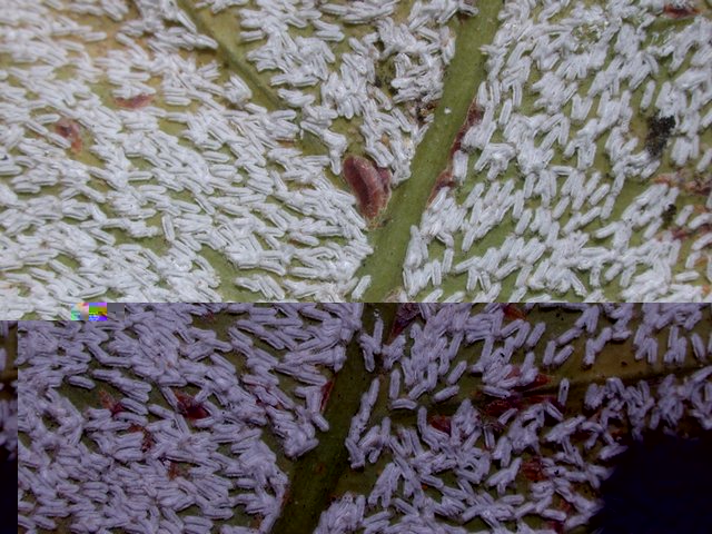 Salve vorrei sapere se c'è qualcuno che può aiutarmi ad identificare questa cocciniglia che ho rilevato su una pianta di limone. Secondo la mia esperienza sembrerebbe non trattarsi della classica "cocciniglia virgola" (Mytilococcus beckii o Mytilococcus gloverii). Da notare anche tutta quella "lanuggine" bianca che non saprei se appartenente allo stesso insetti o a qualche altro. Grazie