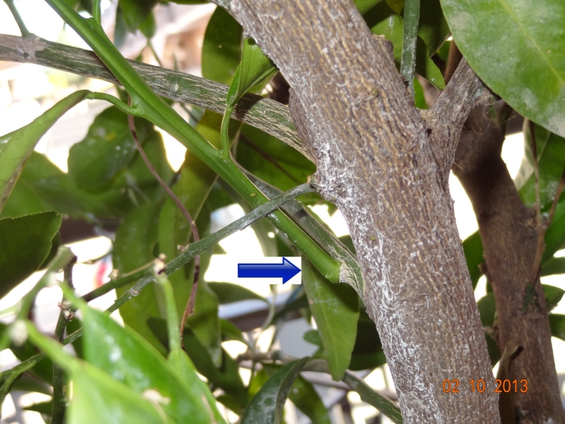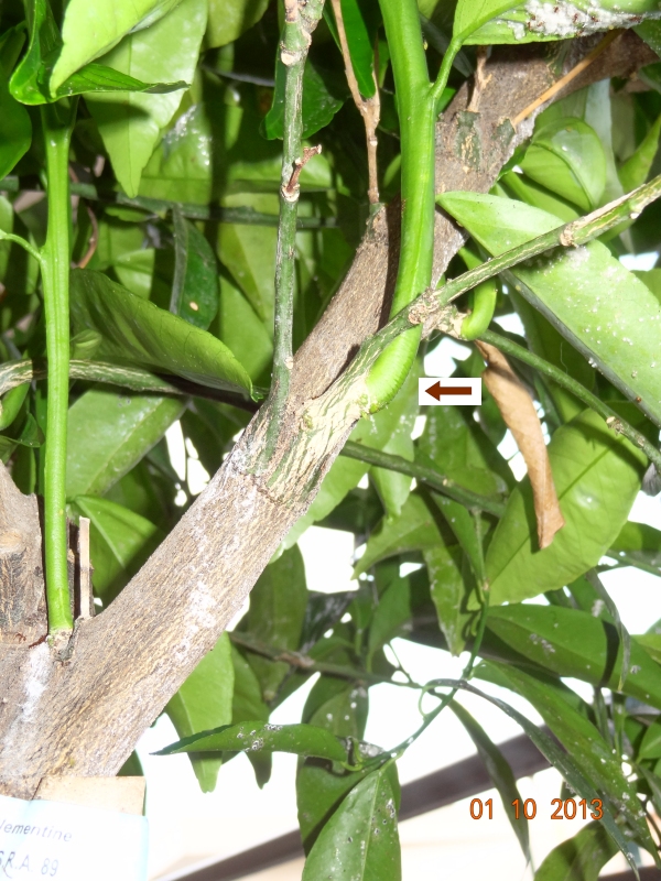 ti faccio vedere i 2 succhioni che vorrei lasciar crescere sul clementino. In questo messaggio ci sono le foto che riprendono da varie angolazioni il succhione di sinistra, poi nel secondo messaggio allego le foto del succhione di destra.