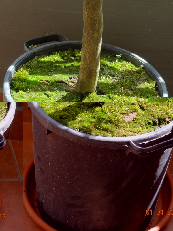 puoi rinvasare la pianta in un diametro superiore di 10-15 cm, con terriccio per agrumi, per il drenaggio usa pietra lavica o lapillo o argilla espansa mettila sul fondo per 2-3 cm, non interrare il colletto, metti la pianta o meglio la zolla a 3-a cm dal bordo in modo di lasciare lo spazio per formare il serbatoio (la quantità di acqua nel momento della innaffiata), devi fare l'operazione quando la pianta ha la zolla asciutta, meglio dopo l'allegazione, la zolla non la spaccare, in caso si rompa non fare l'operazione, puoi con le mani allentare la zolla in caso c'è una rete di radici, l'erba sopra la puoi già levare, più che erba è muschio , vuole dire che è annaffiato più del dovuto stai attento con l'innaffiata, metti il vaso elaevato da terra con delle mattonelle