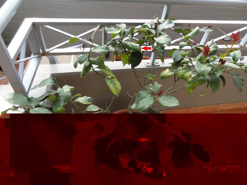 - Vedi dettaglio più ingrandito di ramo piegato in avanti indicato da freccia rossa.