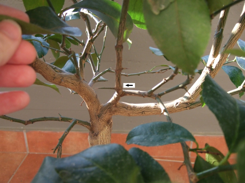 6) Vicino il tronco dove è indicato con freccia nella prima foto parte in alto un ramo che dopo un pò si piega verso l'interno della chioma senza che abbia ramificato come si nota nella seconda foto. Nella seconda foto il ramo che parte da vicino il tronco (vedi prima foto) è quello toccato con la mia mano e si allunga in alto fino a dove si trova l' altra freccia. Ora questo ramo va a finire proprio nel centro della chioma e la riempie un pò, ma cosa conviene fare a primavera..reciderlo dalla base cioè da dove c'è la freccia nella prima foto? O lo potrei accorciare tipo a 4/5 nodi dalla base e vedere di far emettere dei germogli che vanno verso l'esterno della chioma?