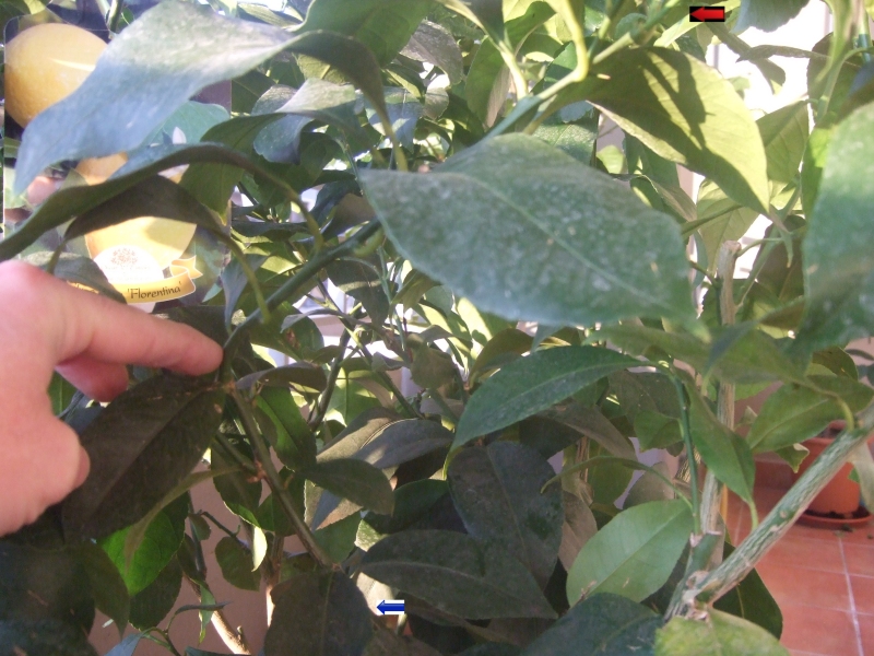 sempre su quella pianta di limone florentina che ho acquistato da poco ho visto che su un lato della chioma della pianta c'è un ramo che va verso l'alto ma a metà strada è un pò piegato (credo piegato di proposito dal vivaista) come vedi in foto (il ramo parte dalla freccia blu in basso e arriva in alto fino alla freccia rossa mentre dove c'è il mio dito lì si vede la piegatura). Questo ramo serve a coprire lateralmente una parte del fianco della chioma della pianta ma non è ramificato, che faccio a primavera lo accorcio e di quanto ? Oppure lo lascio così ? Se lo lascio così in caso fiorirà, sarà piuttosto esile penso per sorreggere frutti.