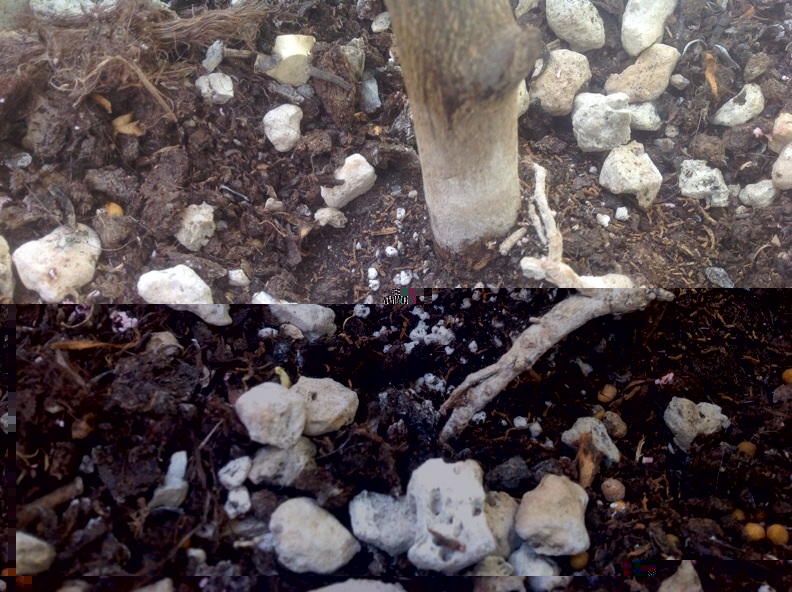 Vorrei tornare invece alla pianta piccola di limone che è quella che mi preoccupa. Non mi sembra ben salda nel vaso, forse potrebbe essere un problema radicale? Evidenziato da una foto di una radice superficiale vicino al colletto.