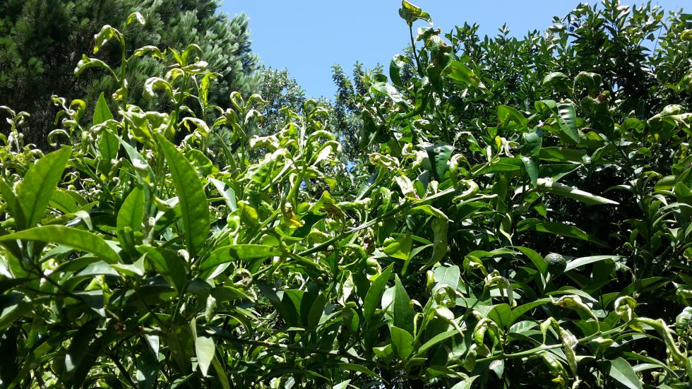 In questi giorni sulle parti apicali di questo arancio (innestato con Naveline) sono comparsi molti rametti colpiti dalle minatrici fogliari. Anche se siamo a stagione avanzata, pensate sia il caso di tagliare i rametti infestati? tra l'altro non ho notato in rssi presenza di frutti che, come sempre, son portati dai rametti di un anno. Grazie delle risposte