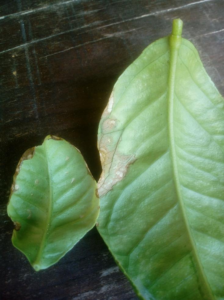 Salve, debbo ricorrere ai più esperti per chiedere cosa potrebbero indicare le foto di queste foglie del limone. A dire il vero ce ne sono poche. L'aspetto generale non è male qualche leggero accartocciamento, comunicato anche in passato, irrigazione regolare e concimazione poca. Attualmente non vi sono fiori ma piccoli limoni, alcuni medi erano caduti ed uno grande l'ho raccolto. Grazie per l'attenzione e saluti Bepi