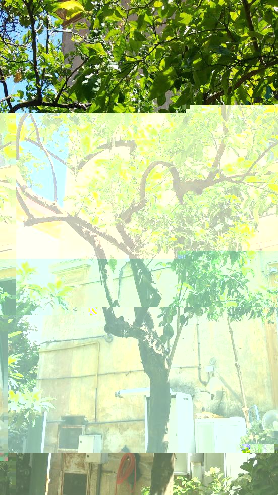 la pianta puo aver subito uno stess per via della potatura essendo che era molto fitta era piu riparata dai raggi solari, non preoccuparti la pianta appena sarà il momento fruttificherà senza grossi problemi, dovrebbe fiorire o questo mese o agosto non aspettarti una fioritura abbondante. Se puoi metti una bella secchiata di stallatico e innaffia in mancanza di stallatico, un concime per agrumi a lenta cessione ne puoi spargere 3-4 pugnetti nel terreno, l'ipotetico arancio fallo maturare per vedere di cosa si tratta, non preoccuparti questo ramo non con arance? non determina la fruttificazione della parte limonosa