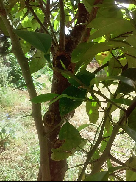 Qui piu da vicino. I rami di cui parlo sono ovviamente quelli in primo piano più bassi. In alto i due più vecchi che fioriscono (si vede nella foto seguente fatta dall'altro lato)