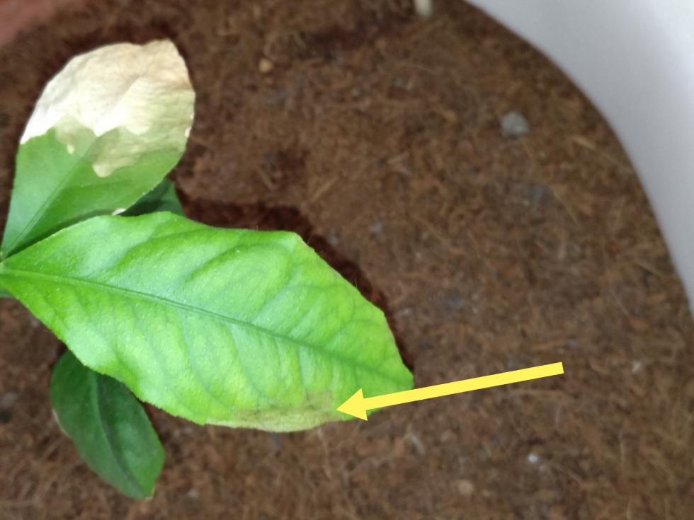 Foglia limone con zona diventata bianca