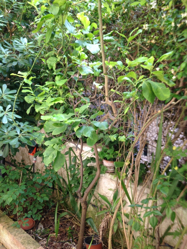 Descrizione:Forse l'unico agrume posizionato con un minimo di criterio (accostato alla parete nord), fa i fiori ma non i frutti.