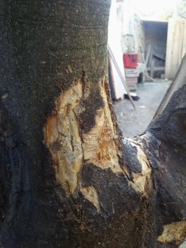 la gommosi ovvero la resina che fuoriesce dalla spaccatura è idrosolubile quindi spennellando l'hai eliminata, momentaneamente!!