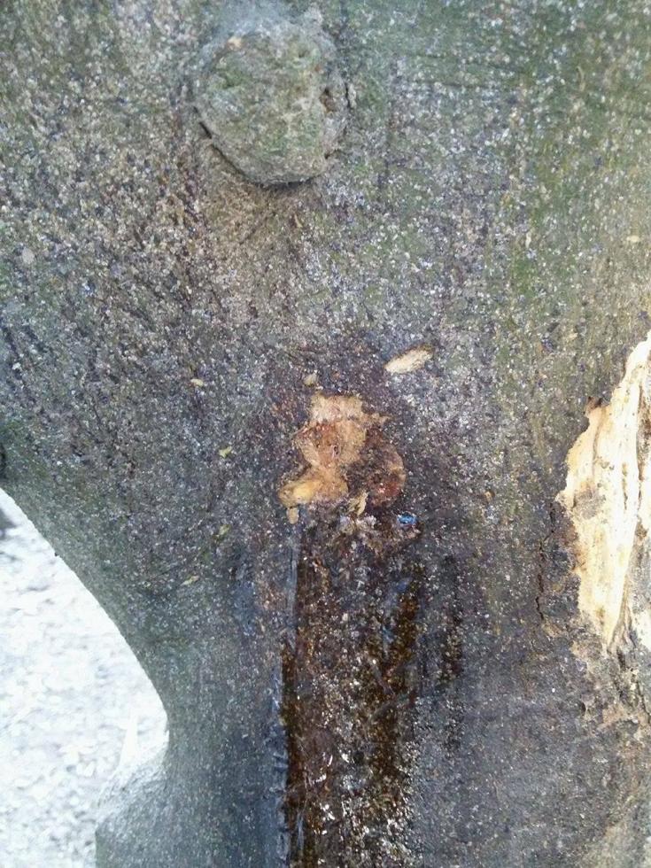 ieri ho passato ipoclorito al 5% ovvero la comune candeggina, oggi la parte si presentava bella chiara e asciutta vedremo se continua la colata di gomma