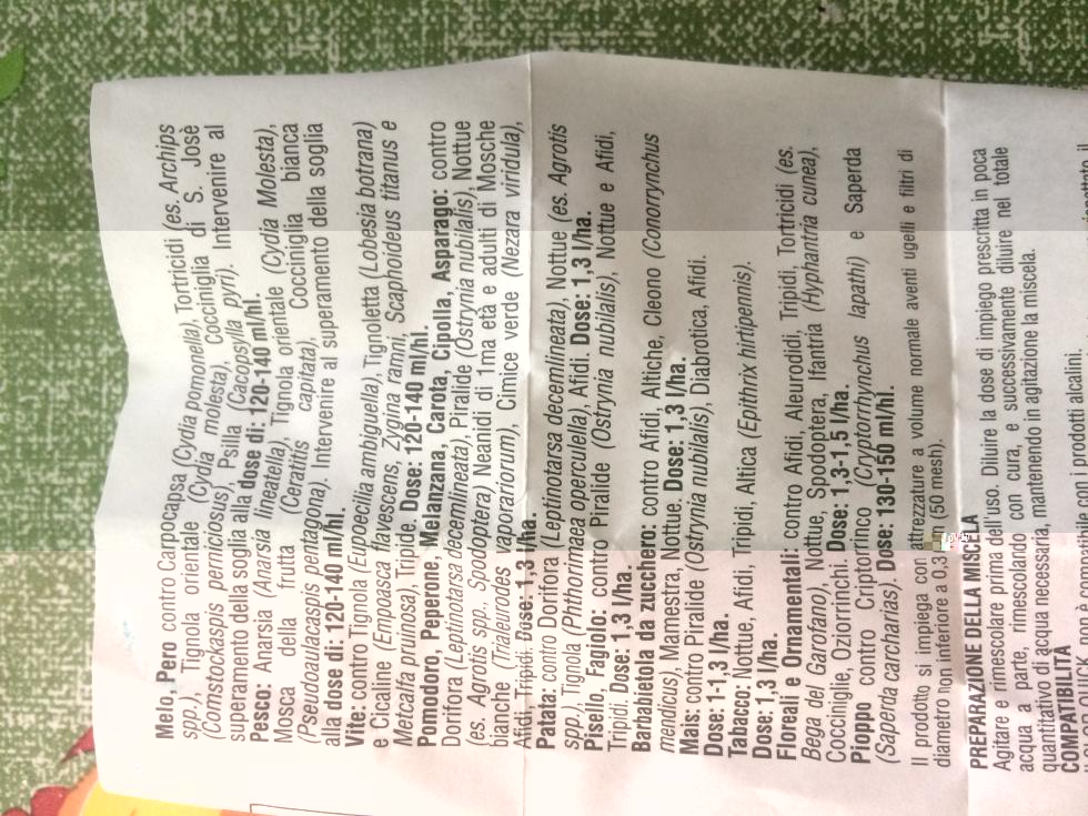 Si infatti c'erano le formiche ma ho risolto questo problema mettendo la polvere bianca attorno al vaso sul pavimento del balcone. Comunque sto usando un insetticida (nn un fungicida come avevo scritto) ma nn so se è adatto (vi invio il foglietto all interno senza fare pubblicità) oggi proverò a pulire figlia per foglia e rispruzzare sperando che muoiano definitivamente. Mi dite per cortesia se il prodotto è valido?