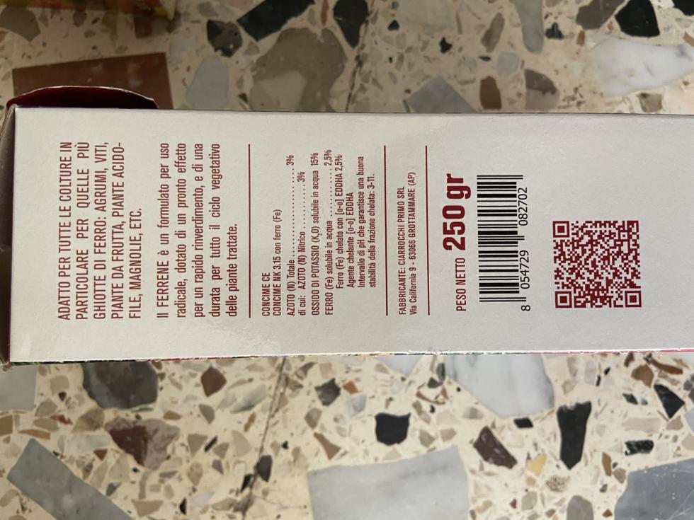 Ciao io innaffio ogni tre giorni 1 litro di acqua ho un vaso di 36 di diametro, in assenza di acqua piovana faccio bollire l’acqua in pentola e poi farla raffreddare x tre giorni e poi innaffio poi per il concime uso questo in foto e lo uso sia ad aprile che a fine settembre poi per prevenire qualche insetto uso zeolite chabasite ogni 10 giorni e anche perché prese un fungo provenienti dalle abbondante irrigazione che facevo e mi avevano detto di trattare con chabasite e zeolite adesso è migliorata un po’ dalla questione foglie visto che prima erano tutte macchiate di marrone anche se nn fa vegetazione , non la poto perché ho i limoni sopra e la poterò verso marzo e secondo me gli metto anche un vaso di terracotta x evitare di far bruciare le radici quando fa troppo caldo e non farla stressare troppo , adesso vi mando i prodotti che uso