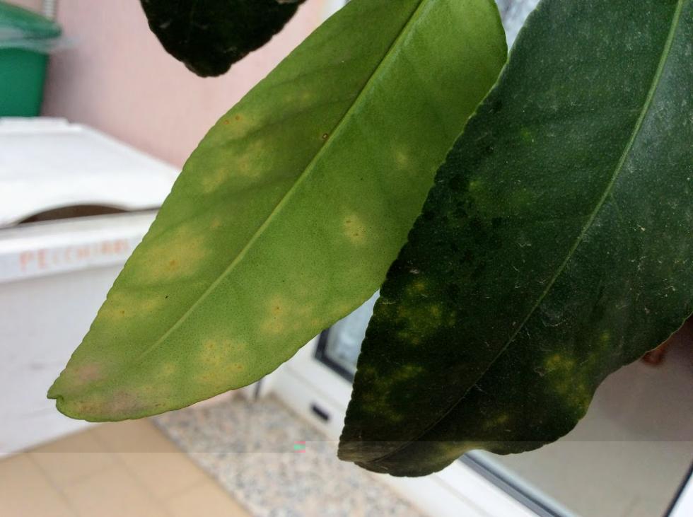 la foglia in alto ha in punta una zona scura,le cause possono essere diverse ma non ne farei motivo di allarme. la foglia più in basso mostra chiaramente zone di colore giallo verso il bordo in alto , succhiature di ragnetto rosso ma roba vecchia come già riferito. sono diverse le zone gialle, il rosso succhia la clorofilla. le foglie colpite dal ragnetto con il tempo diventano gialle e poi cadono. adesso con il caldo i rossi torneranno a farsi vedere, oggi li ho già visti su di un limone. c'è anche un ricambio naturale delle foglie , dopo circa 2 anni cadono.