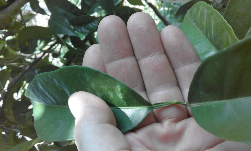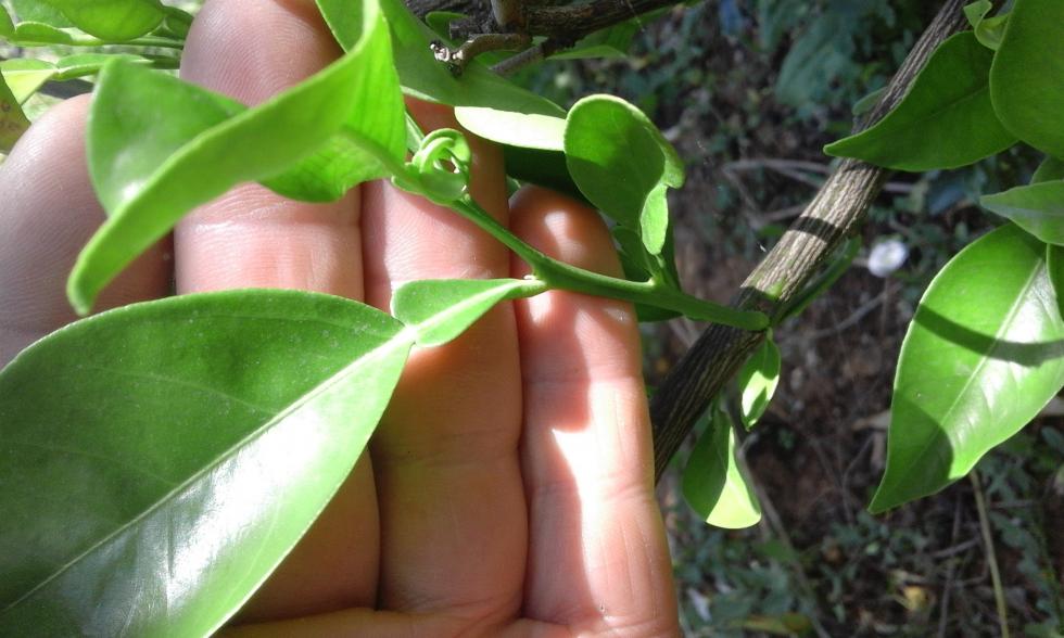 Anche le foglie giovani possono avere la doppia aletta con la crescita della foglia diminuisce l'aletta, comunque se hai margottato in alto da un ramo con arance la varietà è quella non puo cambiare.