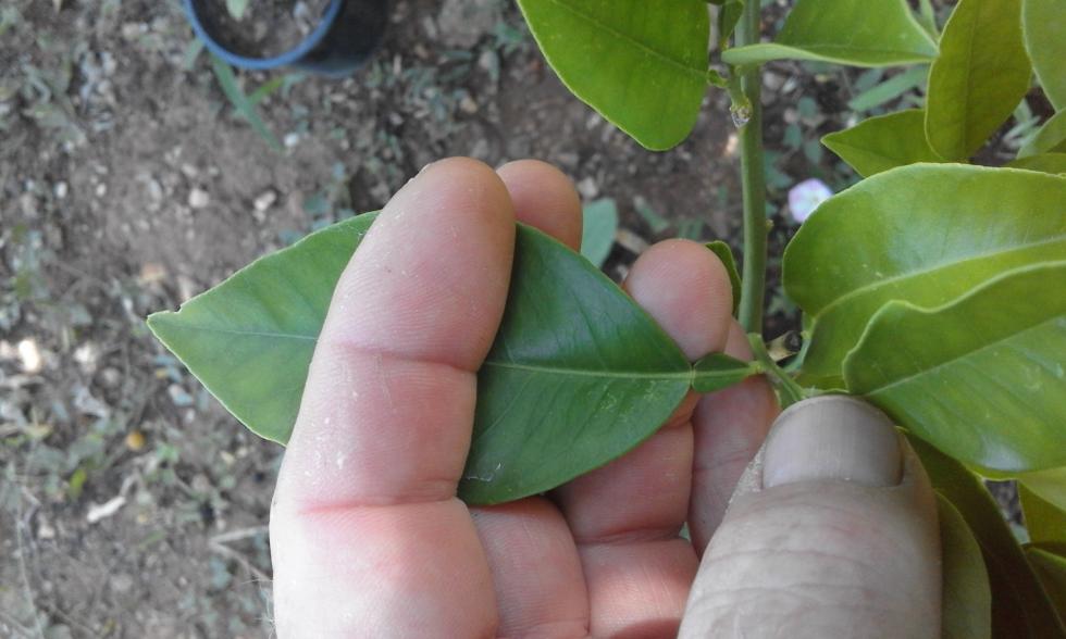 Anche le foglie giovani possono avere la doppia aletta con la crescita della foglia diminuisce l'aletta, comunque se hai margottato in alto da un ramo con arance la varietà è quella non puo cambiare.