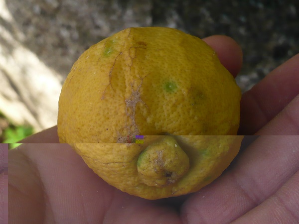 ho trovato un limone nel terreno abbandonato confinante, l'aspetto al quanto malandato  ho raccolto un frutto l'ho assaggiato una vera meraviglia dolcissimo, si potrebbe trattare di limone pane, anche se ne ho uno che produce frutti poco aspri e i limoni sono diversi.