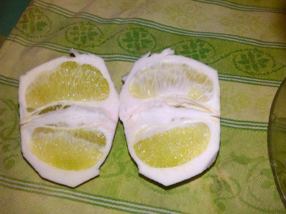 Sai che forse hai ragione  guardandolo meglio non ha nemmeno un seme! Mentre i miei pompelmi bianchi sono strapieni.