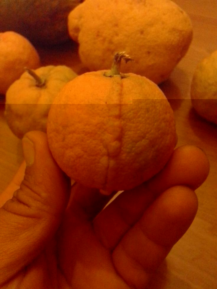 si mai visti. sono strani e di varie forme , chissà cosa è successo alla pianta. magari è una mutazione , oppure anche una malattia. ti converrebbe provare a fare degli innesti. potrebbe diventare una nuova selezione di arancio amaro.