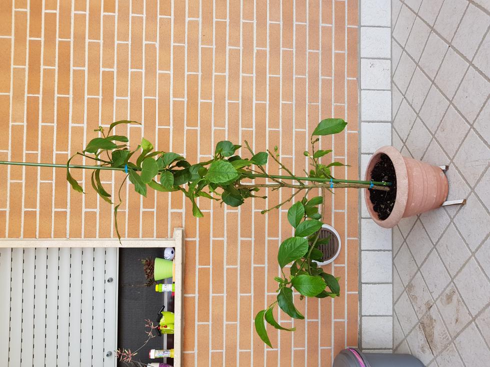 ho risposto in questo modo (partendo dall'alto puoi lasciare il limoncino, ammesso che non cada in seguito, poi sul primo ramo a sx che hai segnato in rosso puoi potare sulle biforcazioni idem per il secondo. i rametti spogli spuntali.)