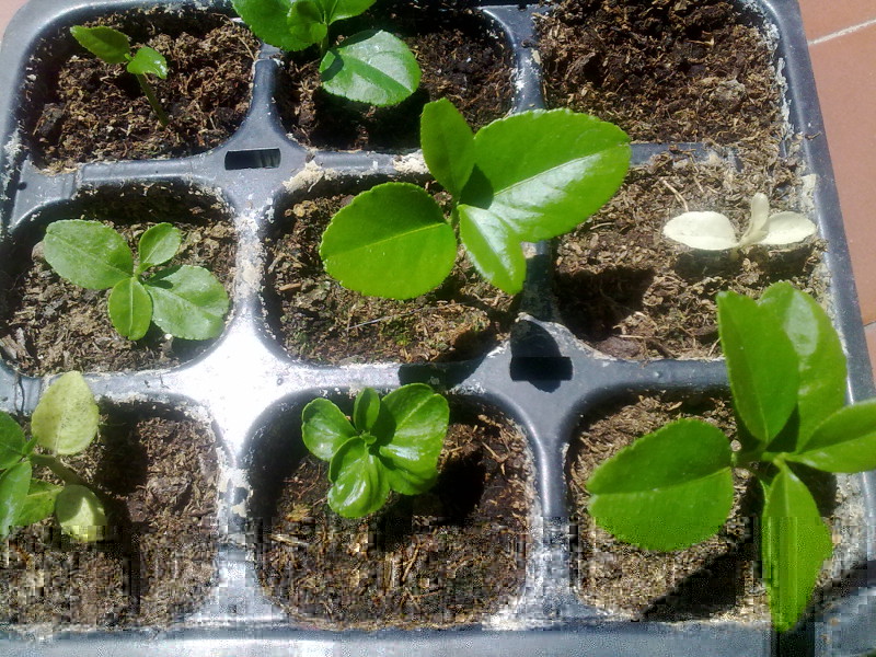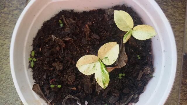 Ho seminato 9 semi di un limone e sono nati 9 limoni di cui uno ha sia le foglie normali che le prime ... bianche candide!?! Albino... incapace di sintetizzare la clorofilla? Eppure non sta morendo...
