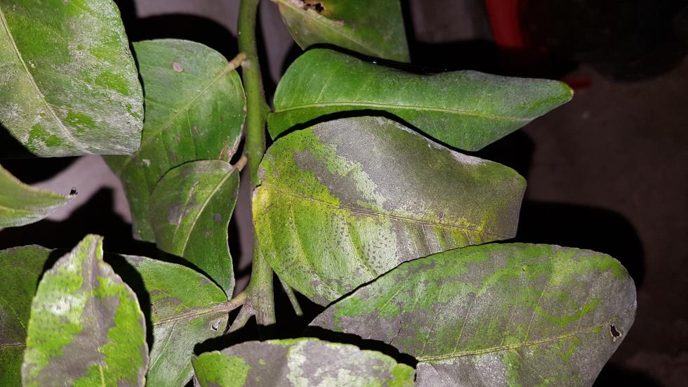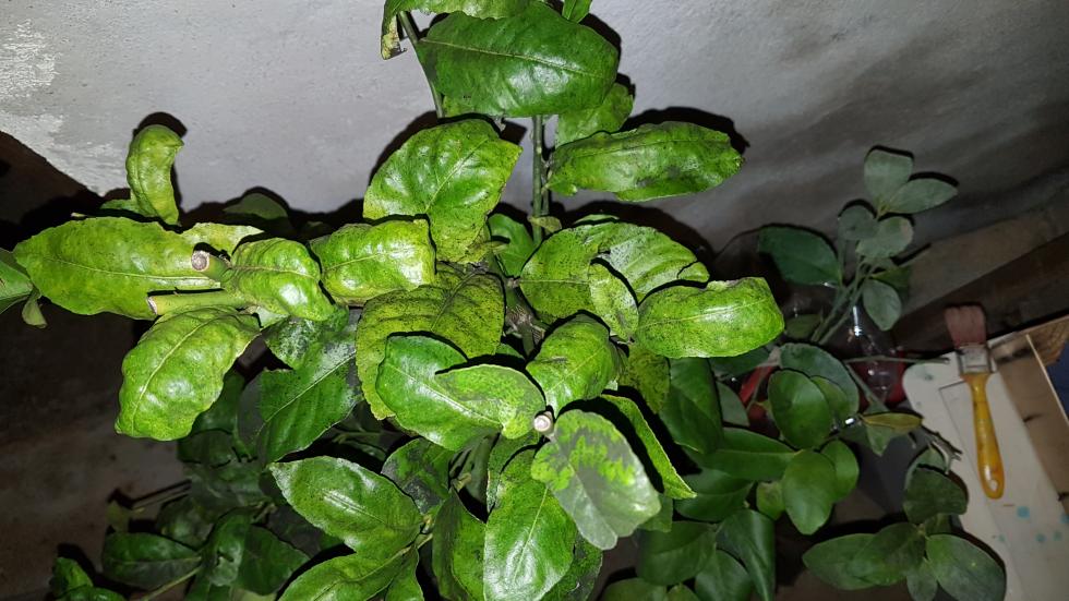 la pianta è attaccata da diversi patogeni. mi pare di vedere succhiature vecchie di ragnetto rosso, cocciniglia e di conseguenza hai la fumaggine, la patina nera sulle foglie. puoi trattare con olio bianco per la cocciniglia ma prima laverei la pianta con del sapone molle potassico questo dovrebbe bastare a levare la fumaggine e la cocciniglia. se poi rimane passa all'olio bianco oppure a dei prodoti chimici. osserva se sulle foglie vedi il ragnetto rosso, è quasi invisibile ad occhio nudo ma se passi le dita sulle foglie e rimangono dei segni rossi allora è presente. per il ragnetto è utile un acaricida anche se adesso si va verso la scomparsa del'acaro. l'olio bianco serve anche ad impedire la schiusa delle uova che si aprirebbero poi in primavera.