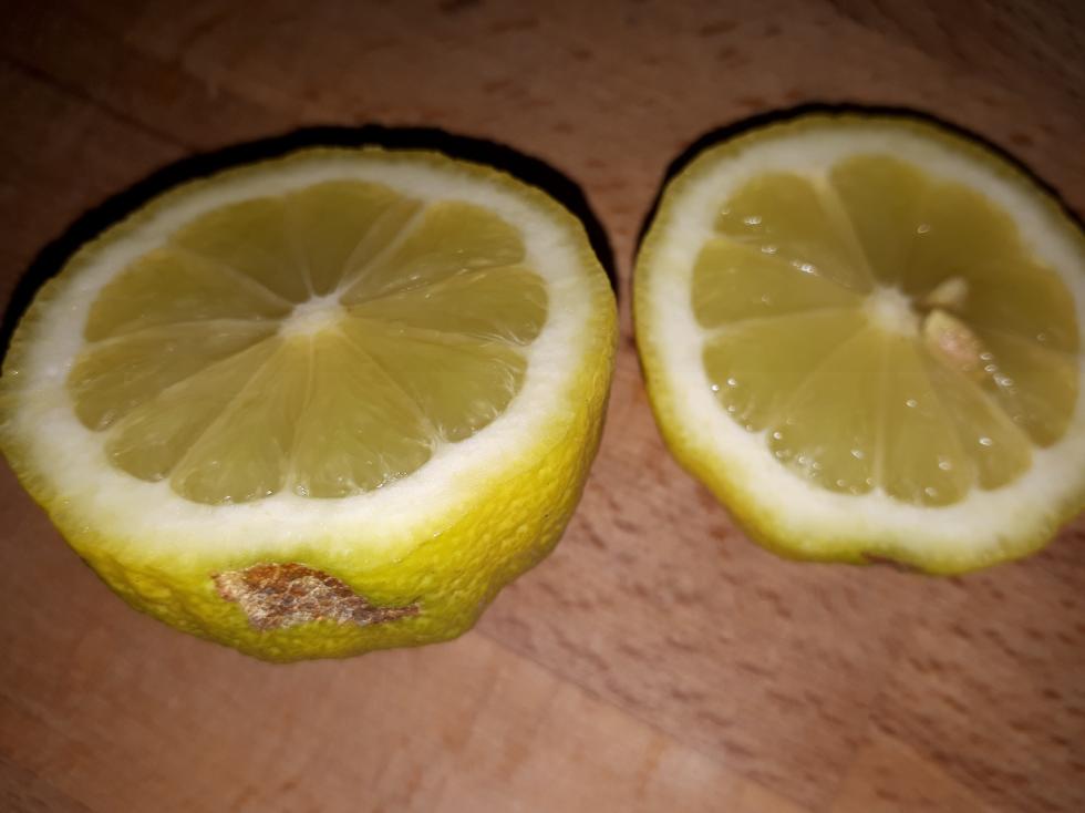 Allora ho tagliato un paio di limoni e sotto le foto fuori e dentro. il problema della buccia sembra partire ed essere solo all'esterno, cioè intacca solo la buccia . I limoni dentro sembrano ok senza marciume sulla buccia dentro o nella polpa interna del frutto il cui colore giallo è ok; mi sembra così.