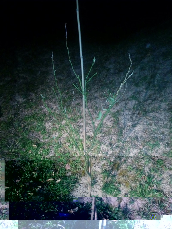Il prossimo mese pota in questo modo dovresti stimolare la pianta, il problema puo essere le radici troppo fitte dovute al tempo trascorso in fitocella o vaso, un terreno troppo compatto, un terreno troppo sabbioso che non trattiene l'acqua ecc. quando innaffi devi allargarti minimo 50 cm dal tronco innaffiatura abbondante.