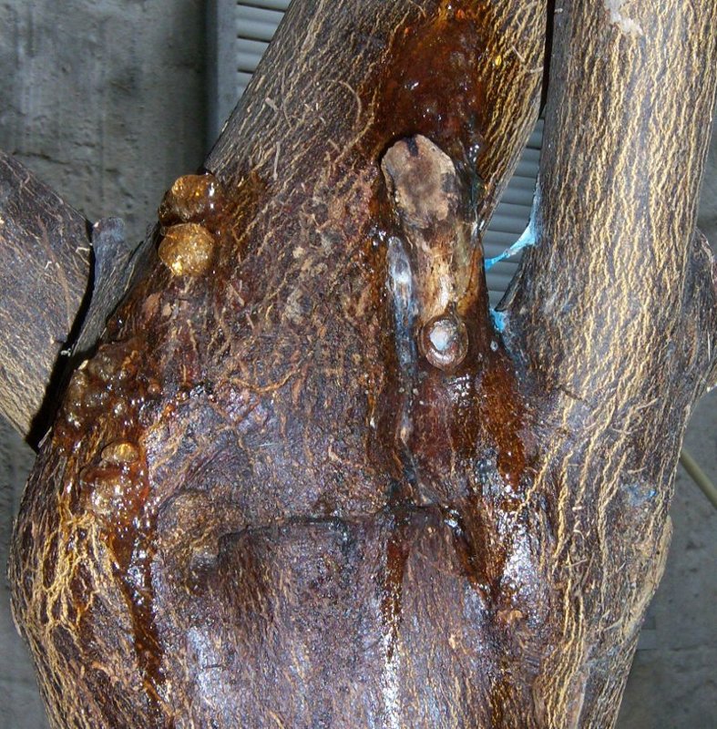 con un coltello levo tutta la corteccia dove è danneggiata, oppure solo dove c'è la resina cristallina?
