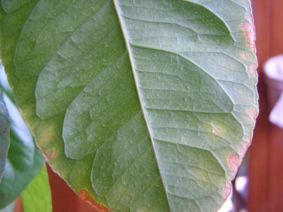 in effetti il ragnetto rosso c'era questo inverno (o almeno mi sembra di aver capito fosse ragnetto rosso: ragnatele sottili vicino al picciolo della foglia, loro, i ragnetti, non li ho mai visti); l'ho lavato abbondantemente con acqua e mi sembrava fosse sparito, ragnatele non ne ho più viste. Metto le foto della pagina inferiore, non che siano venute benissimo...