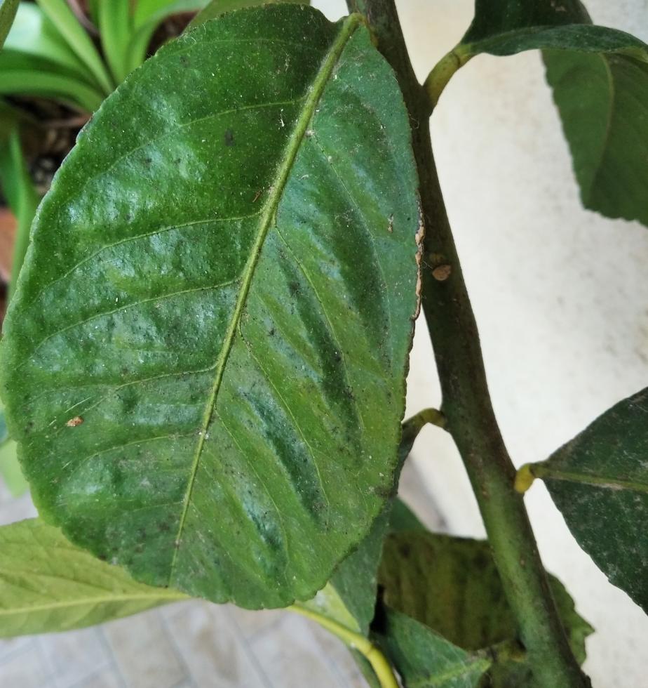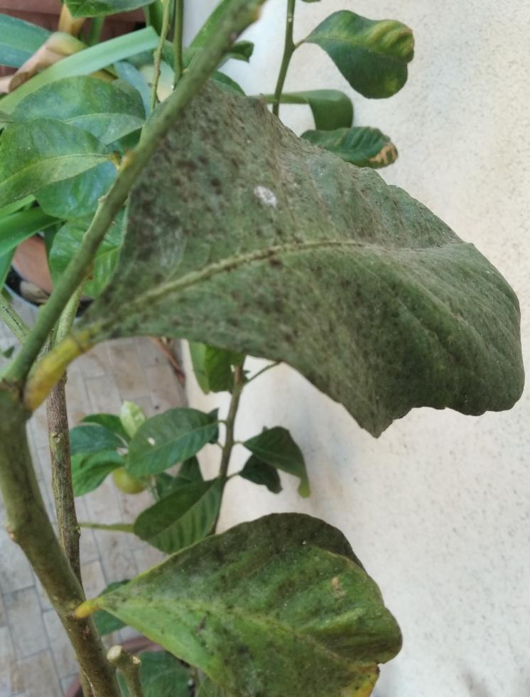 da quel poco che si riesce a vedere pare che ci sia cocciniglia, fumaggine ecc. dai una passata con olio bianco o prodotto adatto.