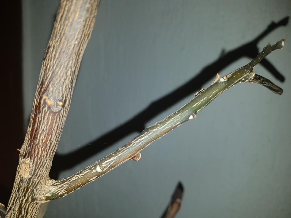 Come vedete c'è ancora un limone attaccato, il suo ramo tuttavia è secco esternamente, tranne in corrispondenza del limone..