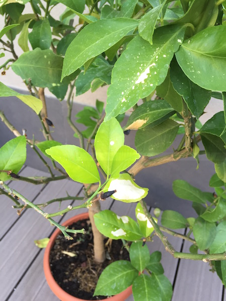 Da un paio di settimane le foglie sono "macchiate", ma di bianco, non di giallo come ho letto da altre parti nel forum.