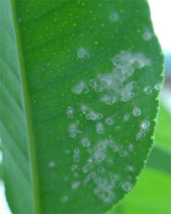Per caso, non hai visto delle piccolissime “farfalline” bianche (ma proprio piccole: nell’ordine di uno-due mm.) svolazzare tra le foglie dei limoni? Sono gli aleurodidi, piccolissimi insetti, detti comunemente “mosche bianche”. Dannosissimi, sia allo stadio di adulti che di larve. Stanno prevalentemente nel lato inferiore delle foglie, dove depositano le uova e succhiano la linfa. Le foglie, nei punti lesionati dagli insetti, emettono goccioline di un liquido appiccicoso, detto “mielata”, che poi nel tempo puo’ diventare nero, chiamato allora “fumaggine”. La foglia appare ingiallita e deformata e, infine, può cadere.