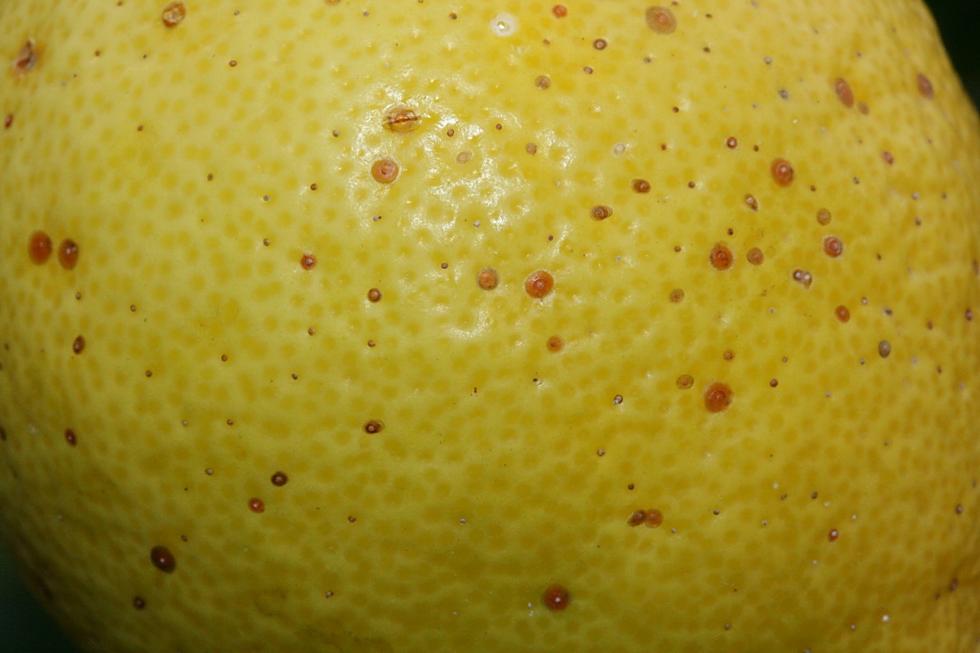 Salve a tutti, sono nuovo del forum e questo è il mio primo messaggio, per cui chiedo a tutti di avere pazienza se commetto qualche errore. Mi sono iscritto perché ho il problema di identificare quale malattia abbia colpito i miei amati limoni. Dopo un inverno dentro al capanno, rilevo delle macchioline color ruggine all'interno dei pori dei frutti, come dalla foto allegata. Non sono in rilievo e non si staccano passandoci il dito, per capirsi. Qualcuno sa dirmi di che cosa si tratta? vi ringrazio in anticipo