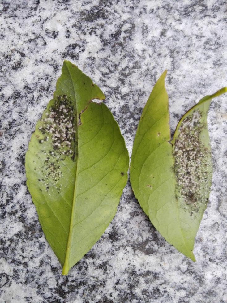 Il problema è molto semplice, sul retro di diverse foglie del mio limone sono ricoperte da ciò che credo essere parassiti/funghi. Di seguito le foto: