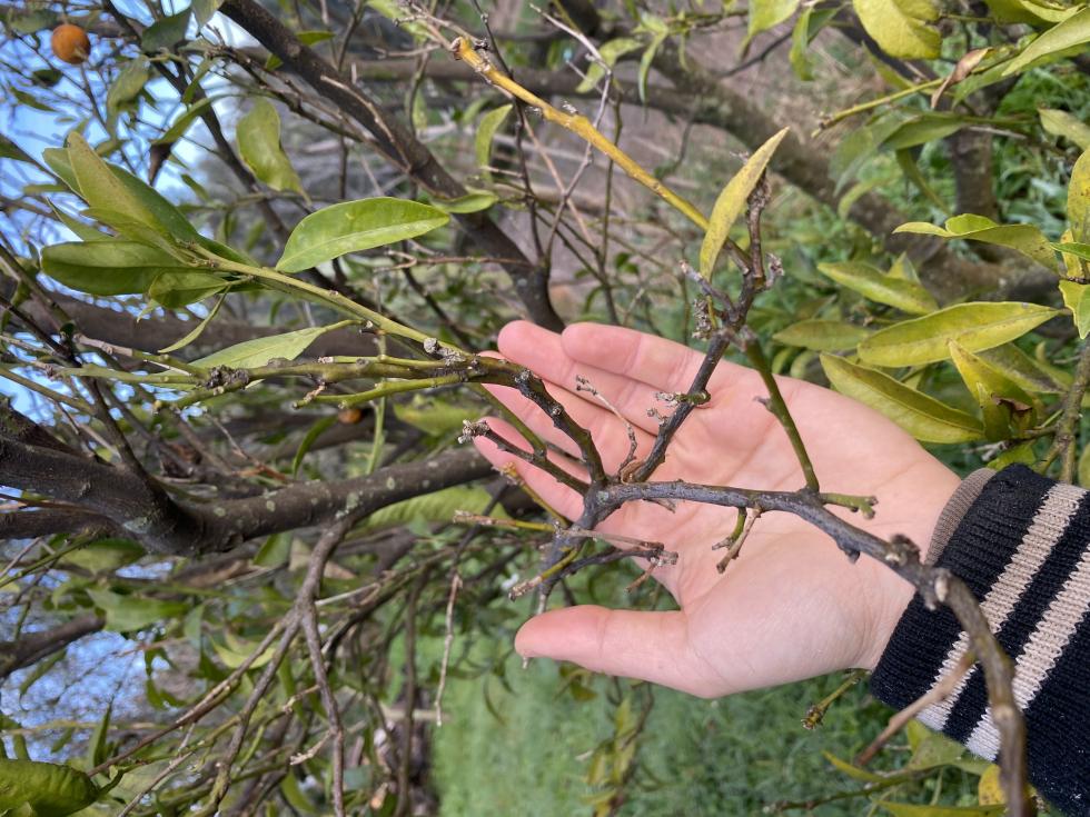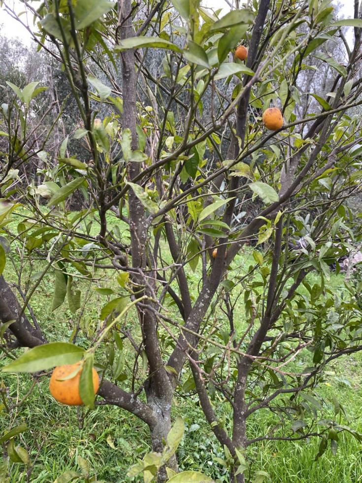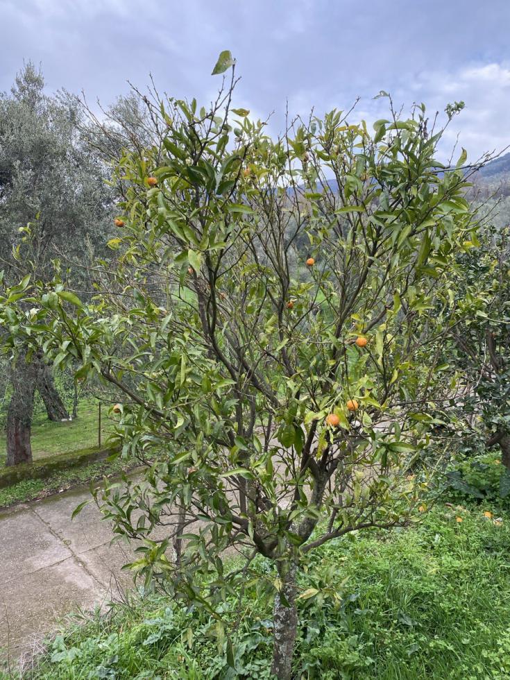 A pochi metri dal mandarino c'è un'arancio che sembra stia iniziando il medesimo deperimento.