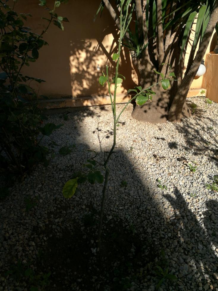 La foto è qui, il limone ha cacciato circa sei o sette germogli da cui si spera nasceranno molte foglie a testa. La foglia in basso a sinistra ha circa due settimane.