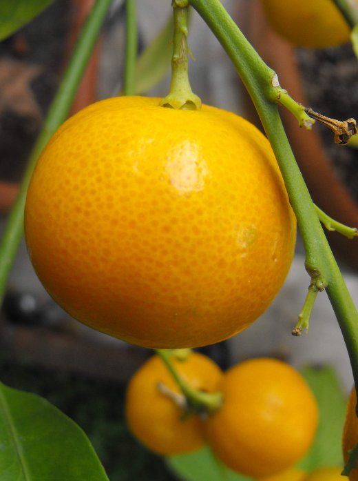 Volevo chiedere nel forum se dalle sole fotografie si riesce a capire che agrume può essere la pianta della foto. Non so molto: la pianta mi è stata regalata come pianta ornamentale non commestibile acquistata da un fioraio. I frutti "sembrano dei piccoli mandarini (c.a. 2cm diametro), hanno il profumo del mandarino, la buccia dei frutti è molto sottile e, di solito è presente un solo seme molto grande in uno degli "spicchi".