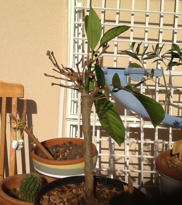 levare il secco e bagnare poco quando la pianta è asciutta e aspettare che mette una chioma migliore prima di potare